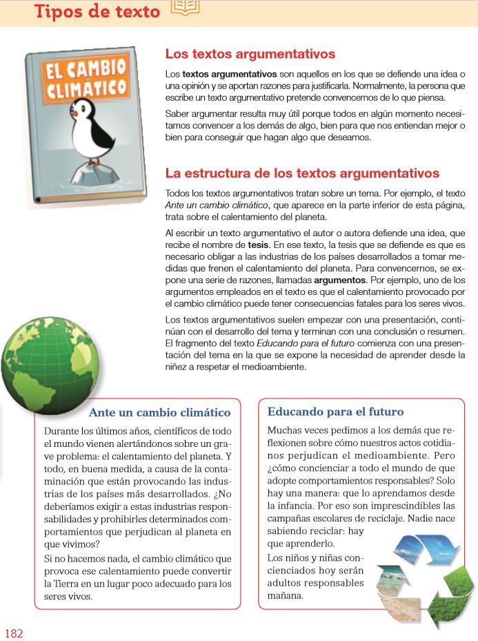 Lenguaje (lunes 8)Profe César5 jun 20201 Min. de lecturaTIPOS DE TEXTO. LOS TEXTOS ARGUMENTATIVOS.Lectura de estas 2 páginas (182 y 183 del libro) + realización en el cuaderno de las actividades de la página 183 --> 1 - 2 - 3 - 4 - 5 - 6